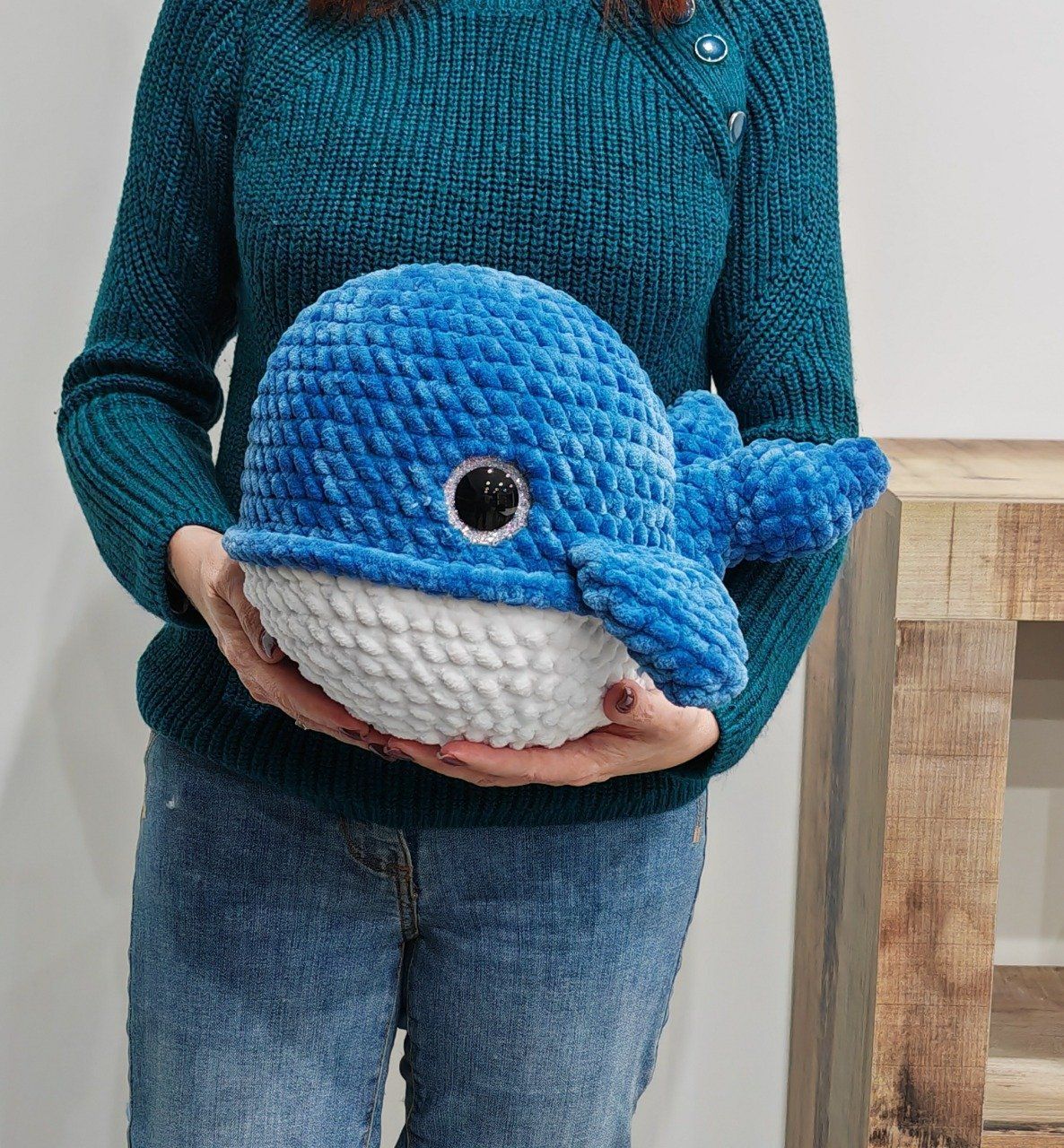 Magnifique baleine réalisée en fil chenille 10 ses grands yeux pailletés sauront vous séduire.