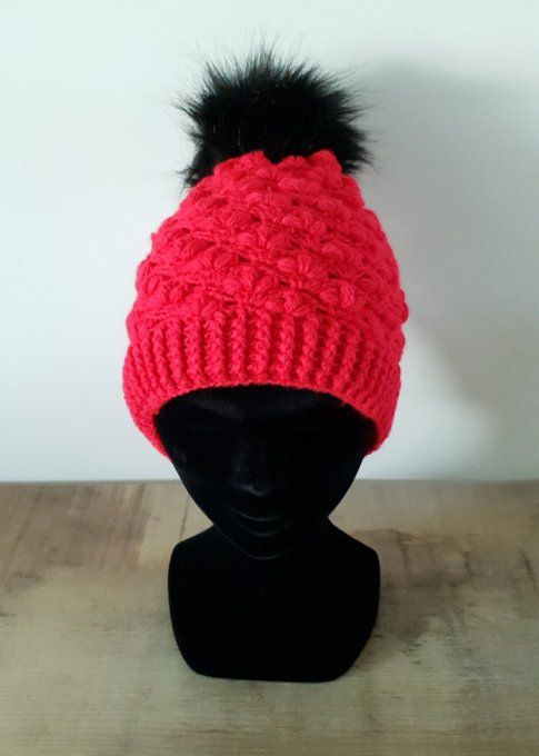 Fait main au crochet, pompon amovible pour faciliter le lavage.